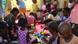 Na het eten van de kleinere kinderen worden de banken opzij gezet en er worden op de vloer dekens/ kleden neer gelegd. De kinderen kunnen dan spelen met Lego en ander speelgoed. Of er wordt voorgelezen en er kan worden getekend en gekleurd.