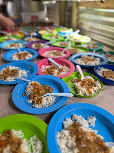 Despite this, our volunteers led by Monica are doing a great job making sure that hundreds of children are fed every day!